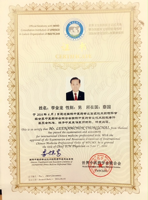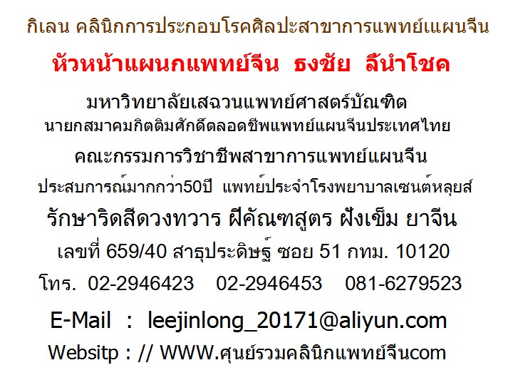 ชื่อภาษาไทย : แพทย์จีนธงชัย ลี้นำโชค