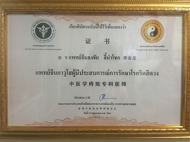 หมายเหตุ : สอบได้หนังสือใบอนุญาตสาขาการแพทย์แผนจีน พจ. 97