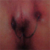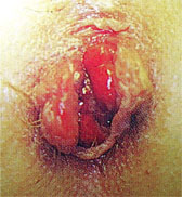 - คัน การมีน้ำหนองไหลออกปากท่อภายนอกบ่อยๆ ผิวหนังรอบทวารหนักจะคัน
