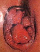 ไม่สามารถหดกลับหรือใช้มือดันเข้าไปในทวารหนักได้